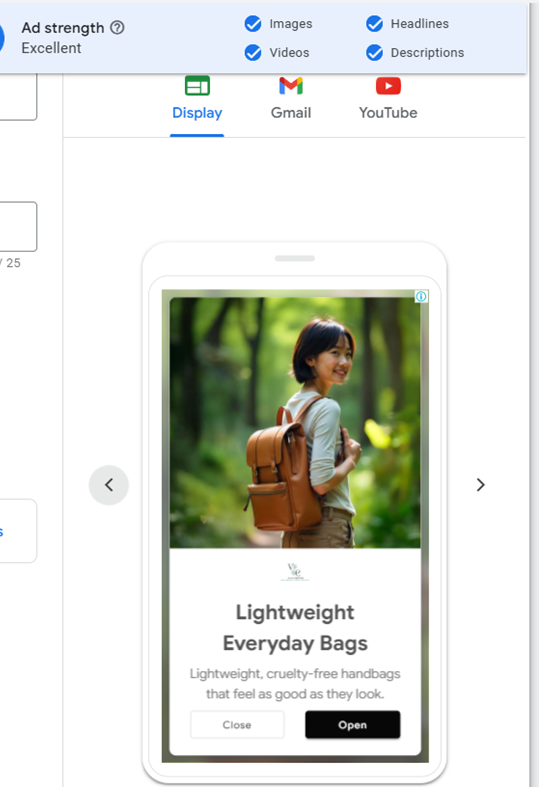 A visual-driven ad set created for Google Display Network, highlighting the versatility of Vayla Creations’ plant-based bags.
